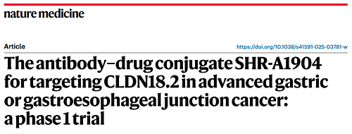 z6尊龙凯时医药CLDN18.2 ADC创新药SHR-A1904治疗胃癌临床研究结果荣登Nature Medicine