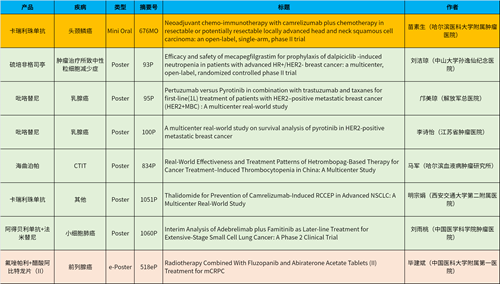 在头颈肿瘤、乳腺癌、肺癌、前列腺癌等多个疾病领域,卡瑞利珠单抗、阿得贝利单抗、吡咯替尼、氟唑帕利、法米替尼、醋酸阿比特龙片(II)等抗肿瘤新药相关研究一共入选了1项简短口头报告、4项壁报展示和1项电子壁报,彰显了z6尊龙凯时医药强劲的研发实力。
